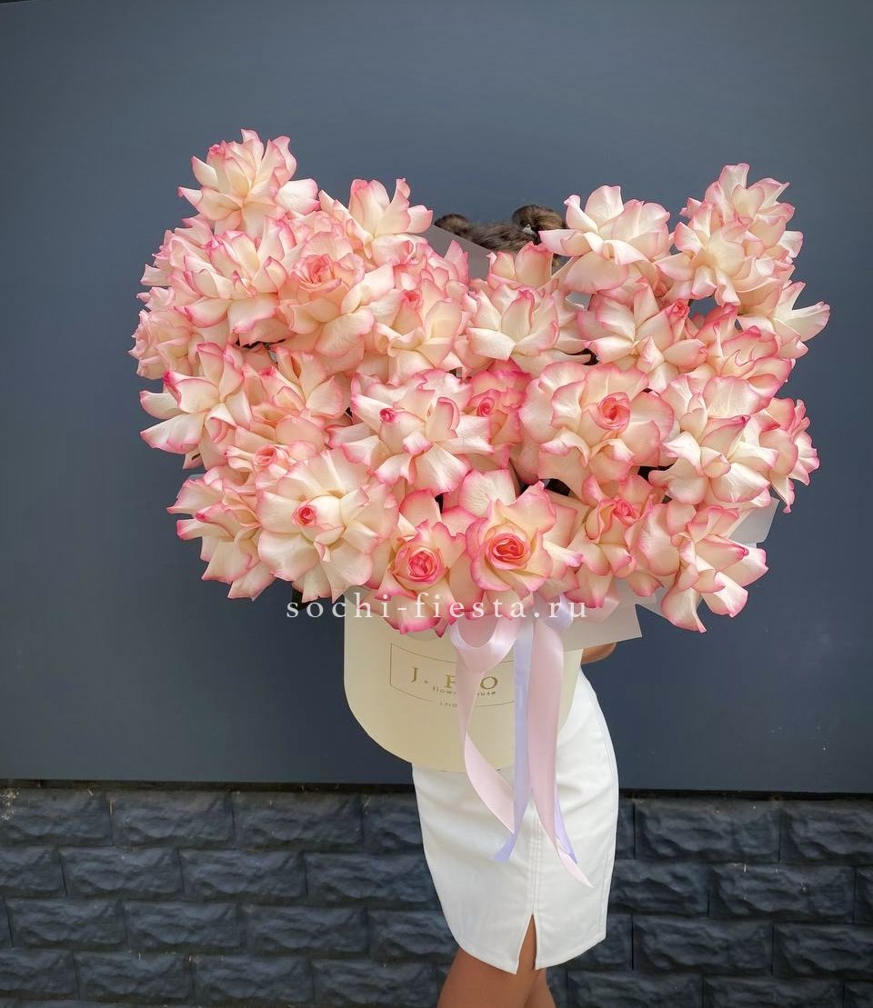 Для заказа товара "31 французская роза Джумилия в боксе" с доставкой в Волгограде нажмите в корзину