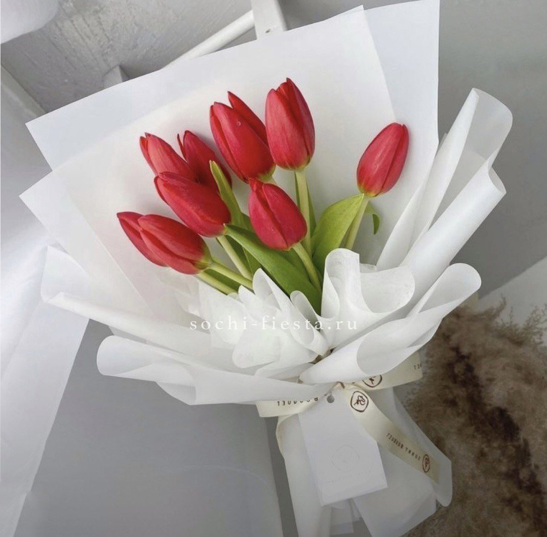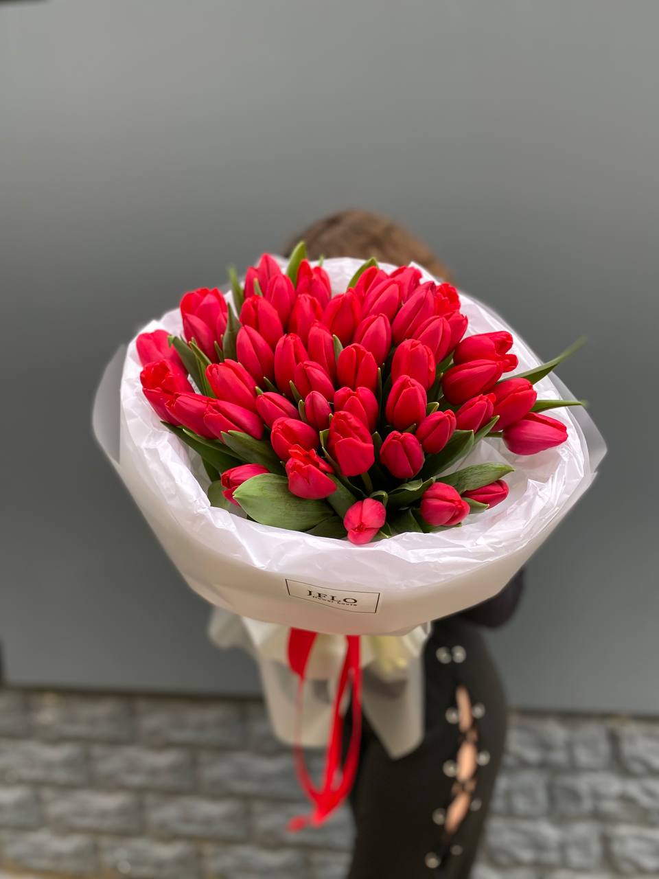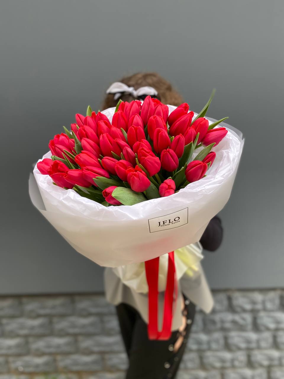 Яркая волна из 51 красного тюльпана в лаконичной упаковке. Плотная сборка создает насыщенное цветовое пятно, которое преображает пространство одним движением. Весенняя энергия в максимальной концентрации.