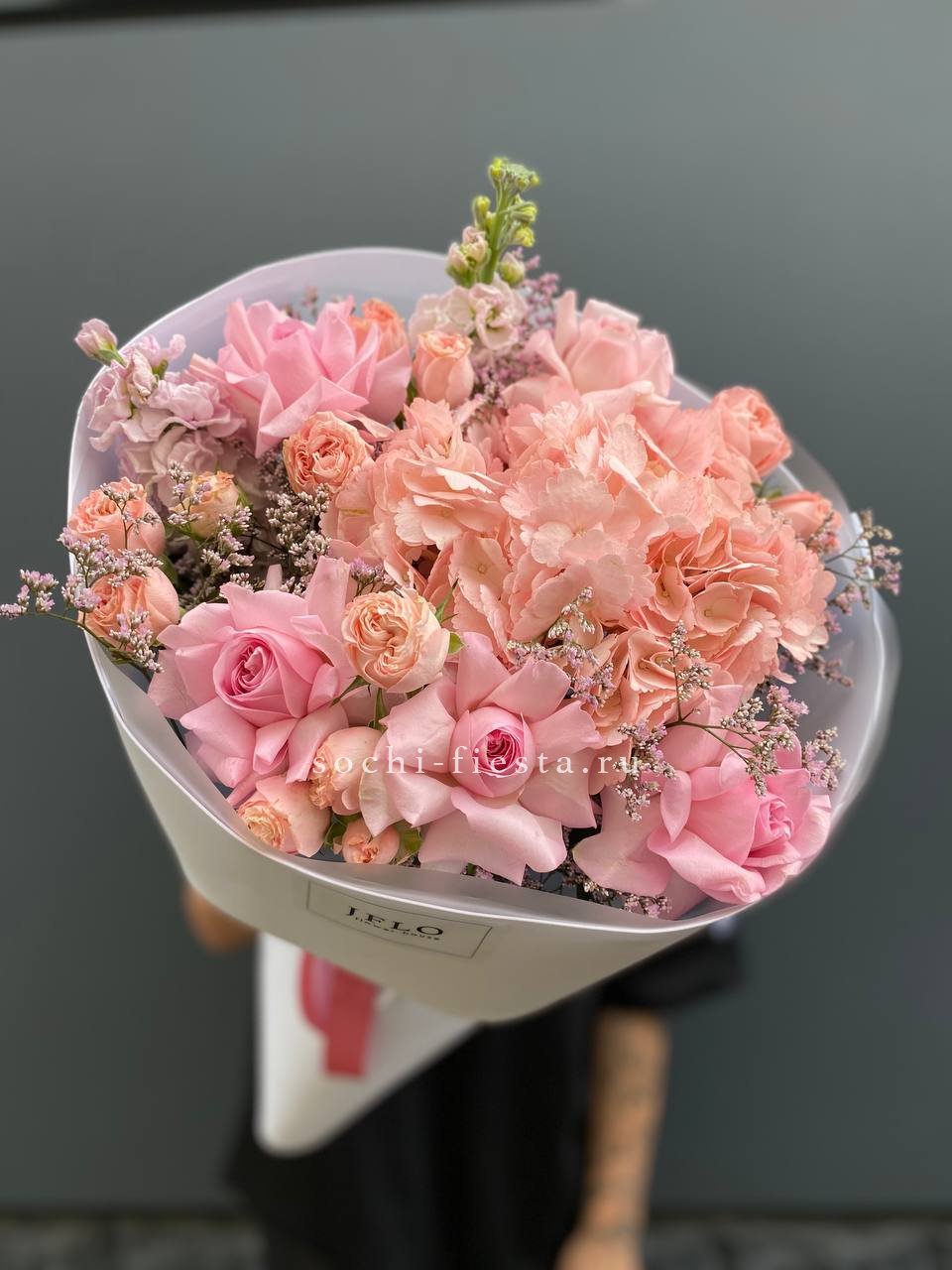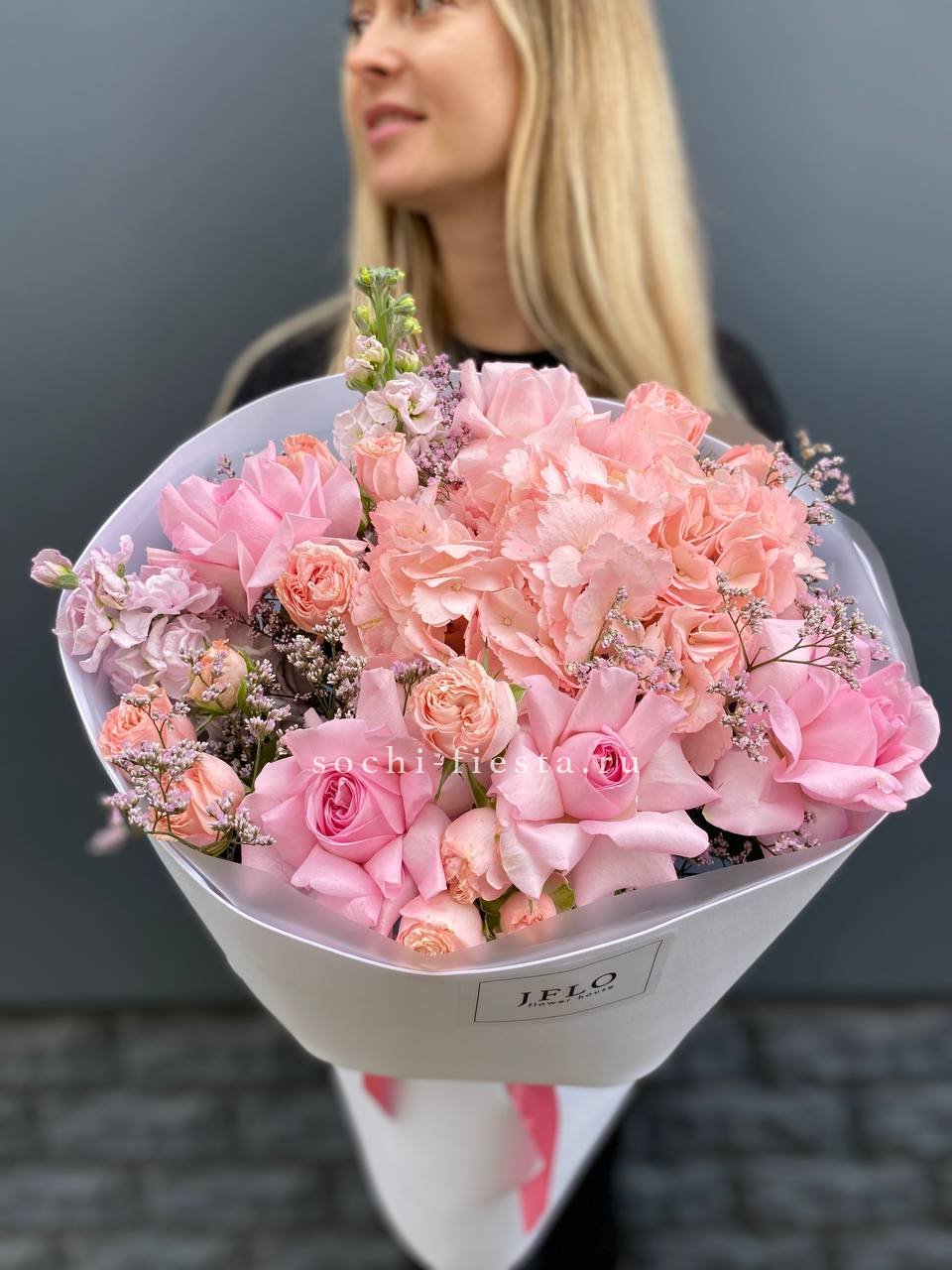 Этот букет — настоящий манифест женственности и ярких эмоций! Он выглядит очень эффектно за счет сочетания разных оттенков розового и игры фактур.