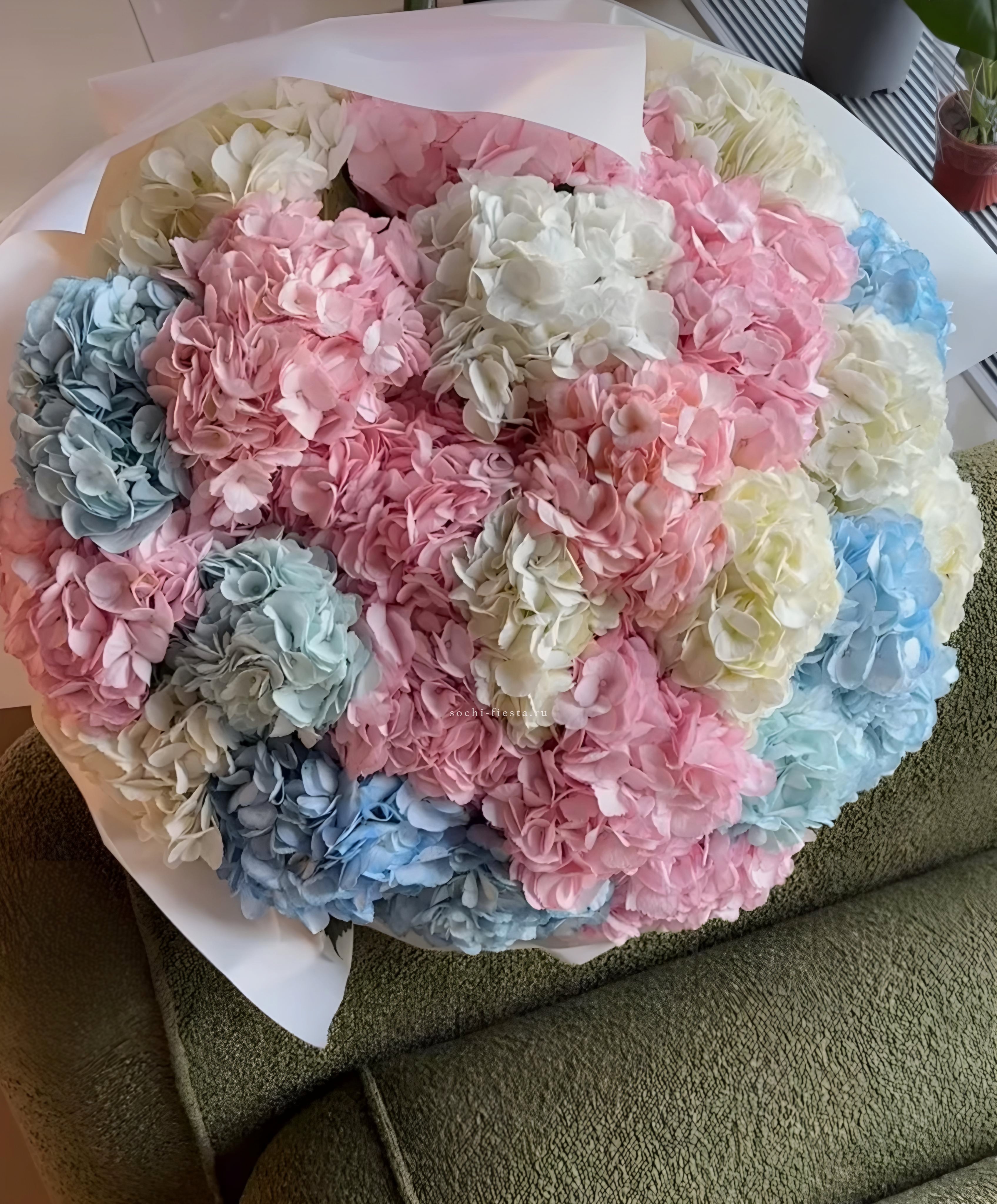 гортензия - 11 шт., лента, дизайнерская упаковка.