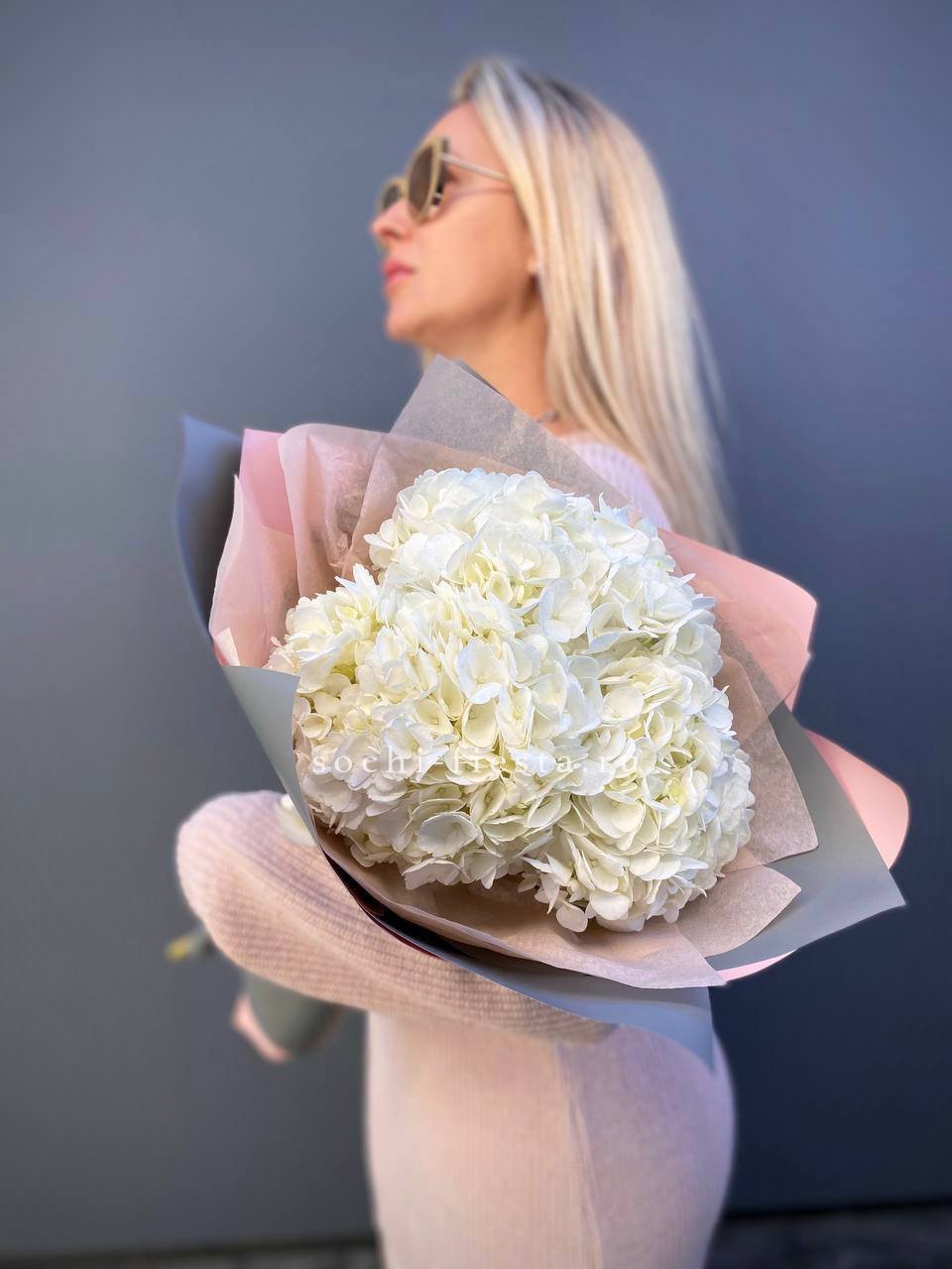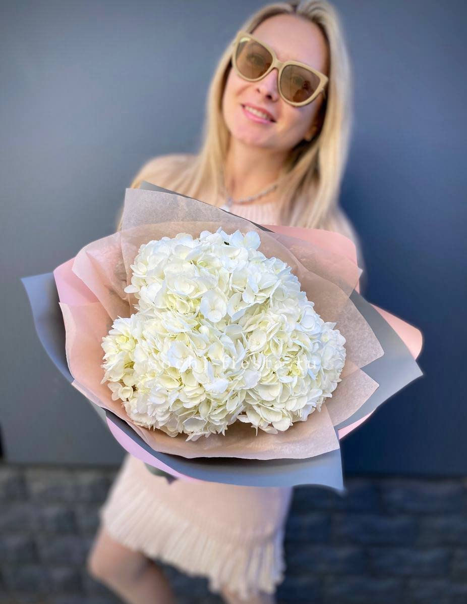 Для заказа товара "Букет из трёх белых гортензий" с доставкой в Волгограде нажмите в корзину