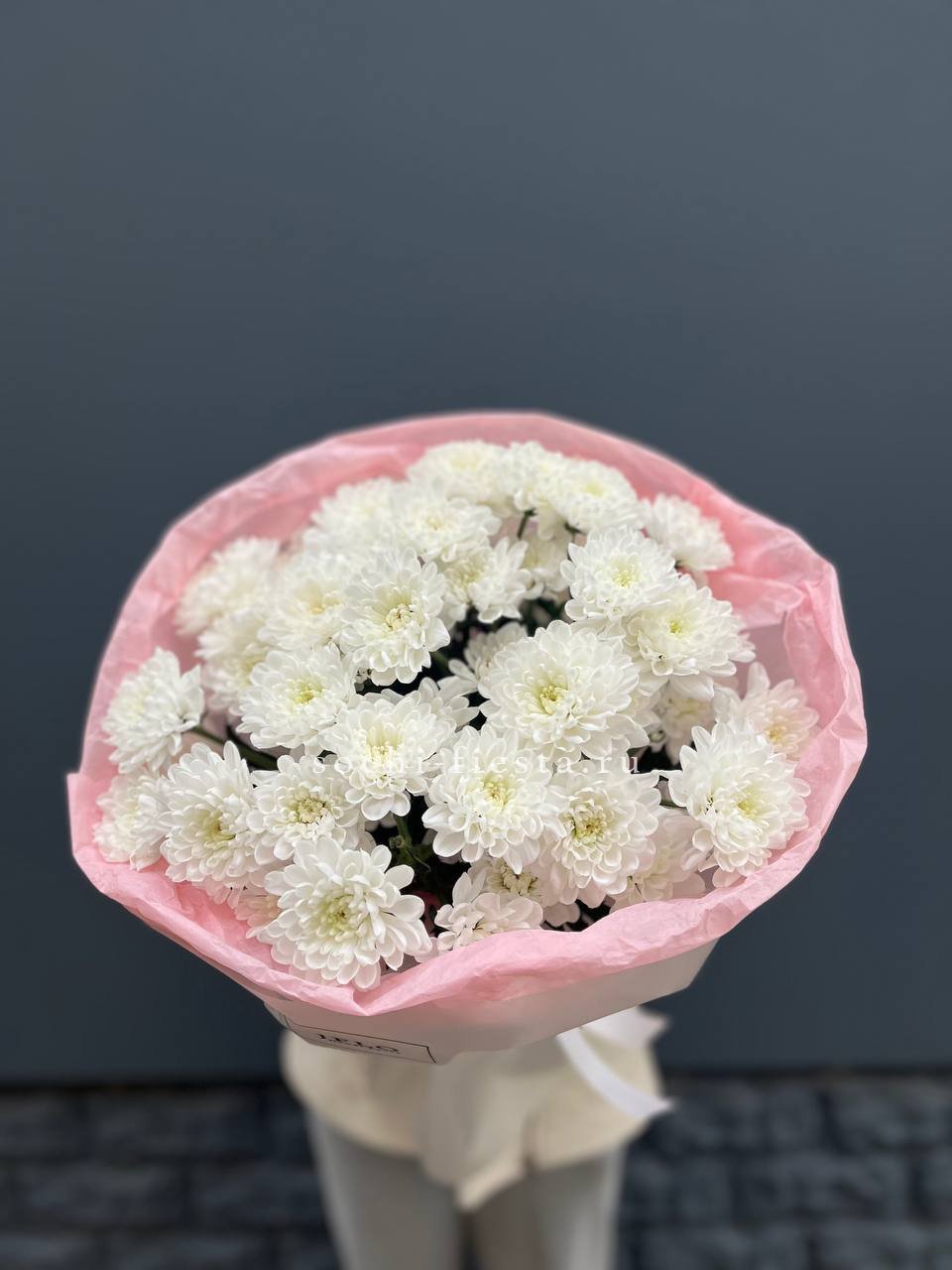 Fifteen веток кустовой хризантемы образуют пышное облако из множества мелких бутонов. Простая упаковка не отвлекает от густоты соцветий и их природной фактуры. Букет долго сохраняет свежесть и объём.