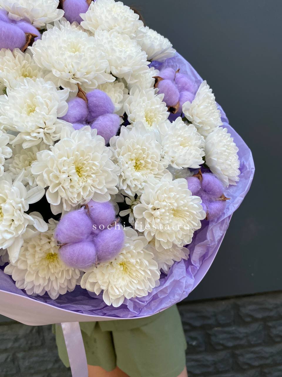 хризантема кустовая - 5 шт., лента, дизайнерская пленка.