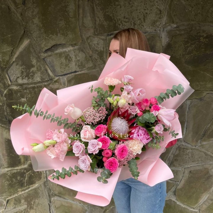 - Редкий состав — David Austin, ранункулюс, анемоны, сезонные пионы.