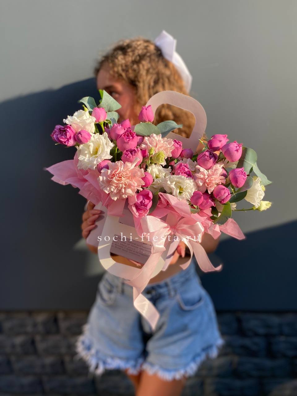 Для заказа товара "Сумочка с кустовой розой и диантусами" с доставкой в Волгограде нажмите в корзину