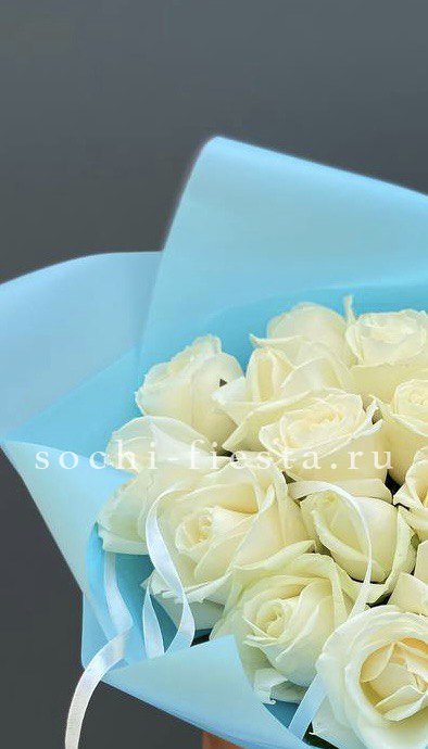 Состав: 27 кремовых роз, лента, дизайнерская пленка или крафт
