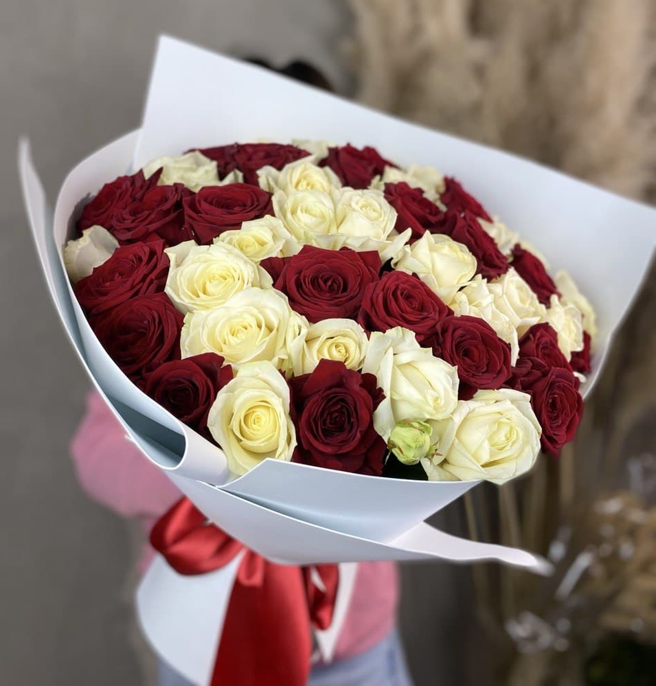 Для заказа товара "51 красная и белая роза" с доставкой в Волгограде нажмите в корзину