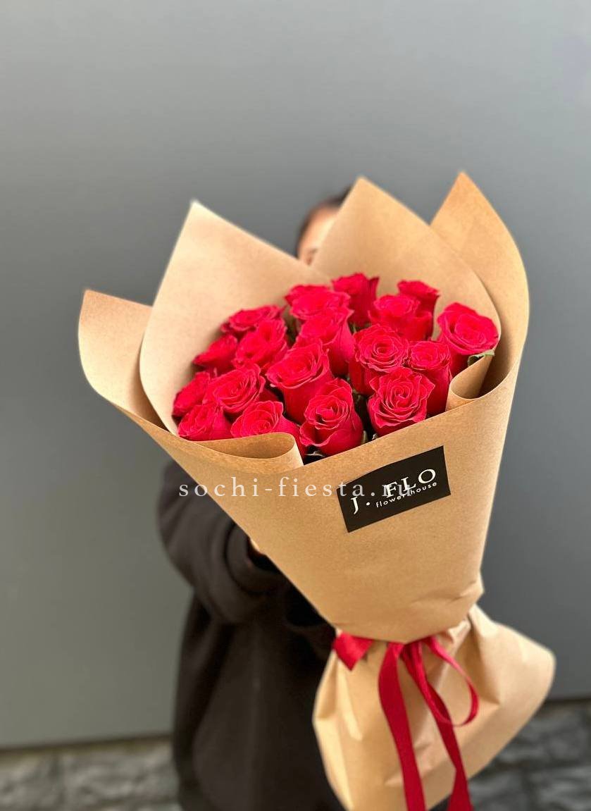 19 красных роз в крафте