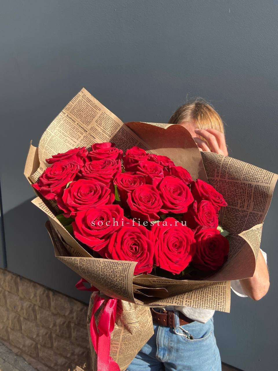 красная роза, лента, крафт (или пленка по желанию покупателя).