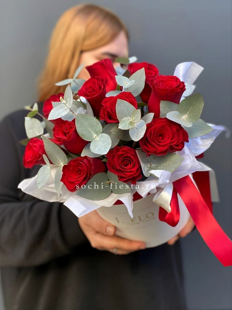 9 роз с эвкалиптом
