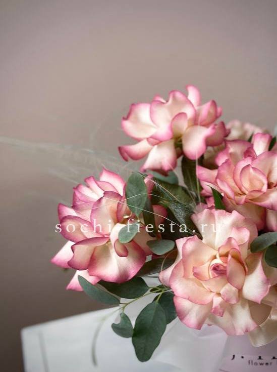 вывернутые розы - 5 шт., эвкалипт - 2шт., лента, авторская упаковка.
