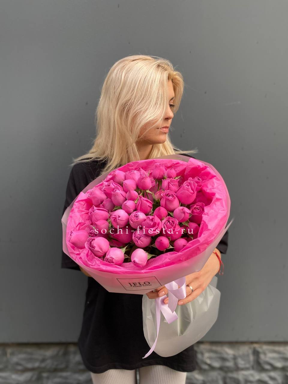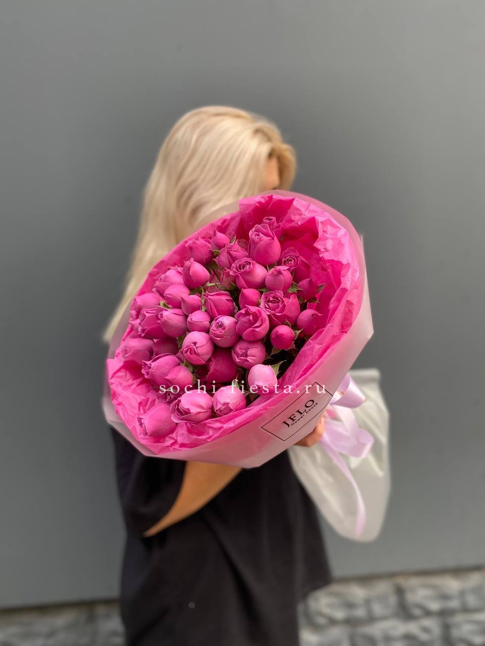 15 кустовых роз спрей, лента, упаковка на выбор.