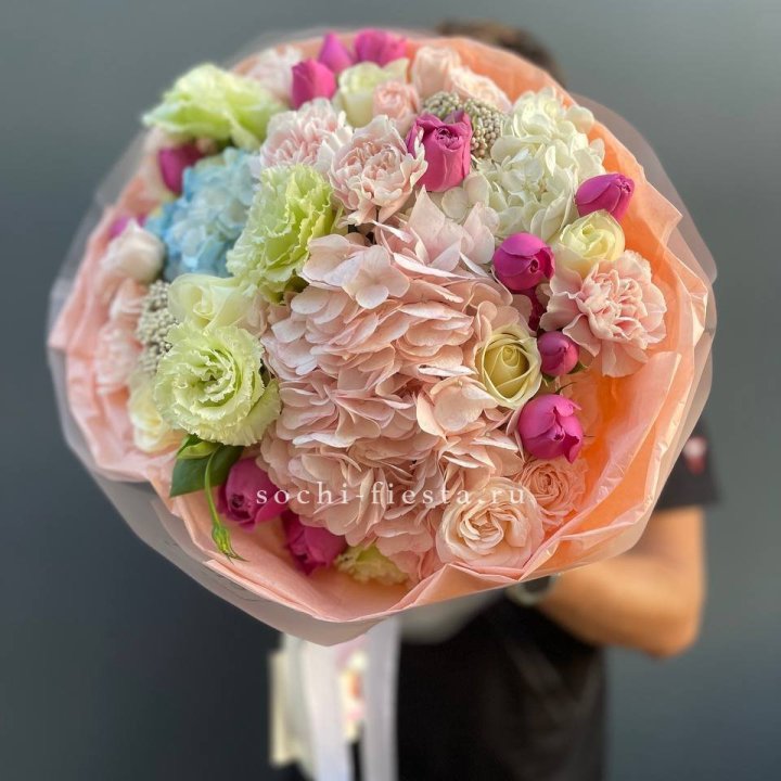 В Волгограде сборный букет — один из главных флористических форматов. Небольшой город не нуждается в авангарде и экспериментах: здесь ценят понятное, красивое и живое. Сборный букет с розами, хризантемами и сезонными акцентами — то, что флорист в Волгограде делает изо дня в день, и делает хорошо.