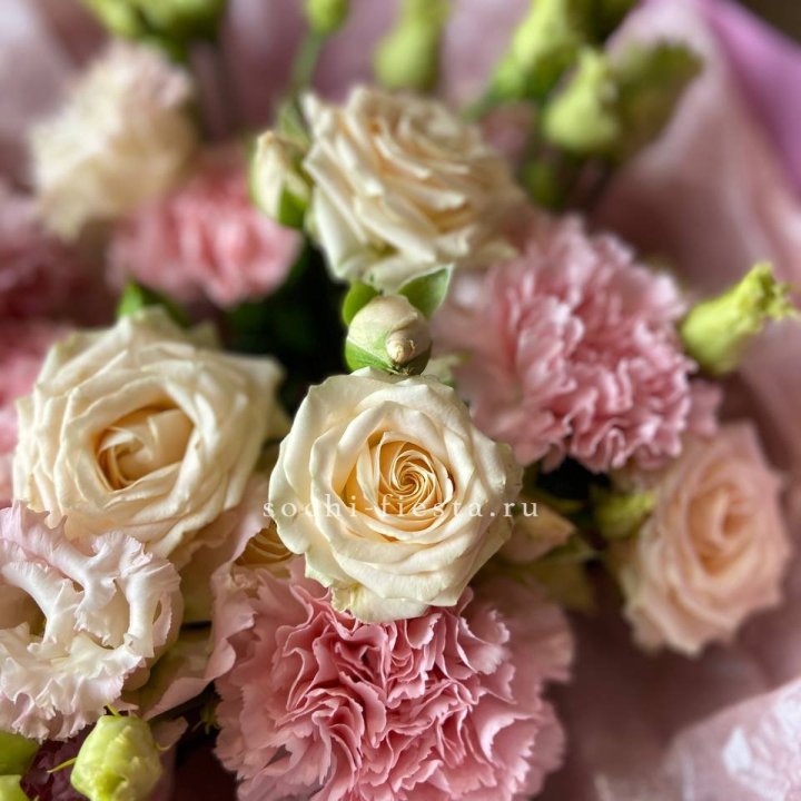 Состав сборных букетов в Волгограде: розы (Freedom, Mondial), хризантема кустовая, альстромерия, эустома, фрезия. Дополнительно в сезон — тюльпаны, нарциссы, ранункулюсы, ирис. Поставки в Волгограде раз в 3-5 дней из ближайшего регионального центра. Флорист планирует ассортимент под дату поставки и знает, что будет в наличии к нужному дню.