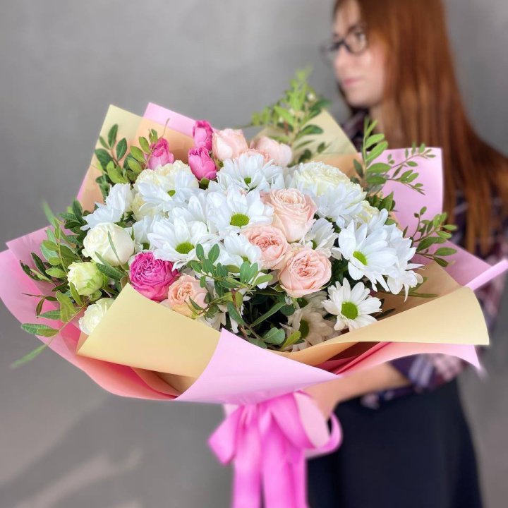 В Волгограде сборный букет — один из главных флористических форматов. Небольшой город не нуждается в авангарде и экспериментах: здесь ценят понятное, красивое и живое. Сборный букет с розами, хризантемами и сезонными акцентами — то, что флорист в Волгограде делает изо дня в день, и делает хорошо.