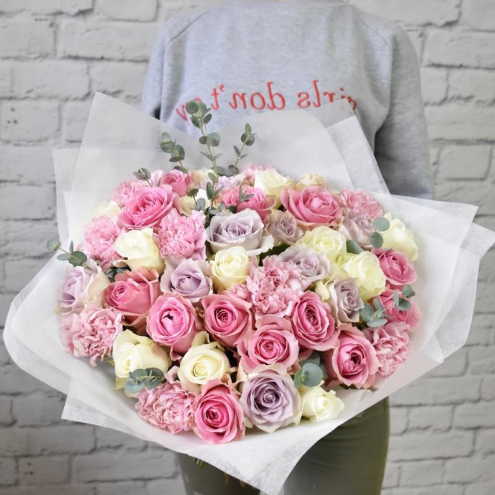Состав сборных букетов в Волгограде: розы (Freedom, Mondial), хризантема кустовая, альстромерия, эустома, фрезия. Дополнительно в сезон — тюльпаны, нарциссы, ранункулюсы, ирис. Поставки в Волгограде раз в 3-5 дней из ближайшего регионального центра. Флорист планирует ассортимент под дату поставки и знает, что будет в наличии к нужному дню.