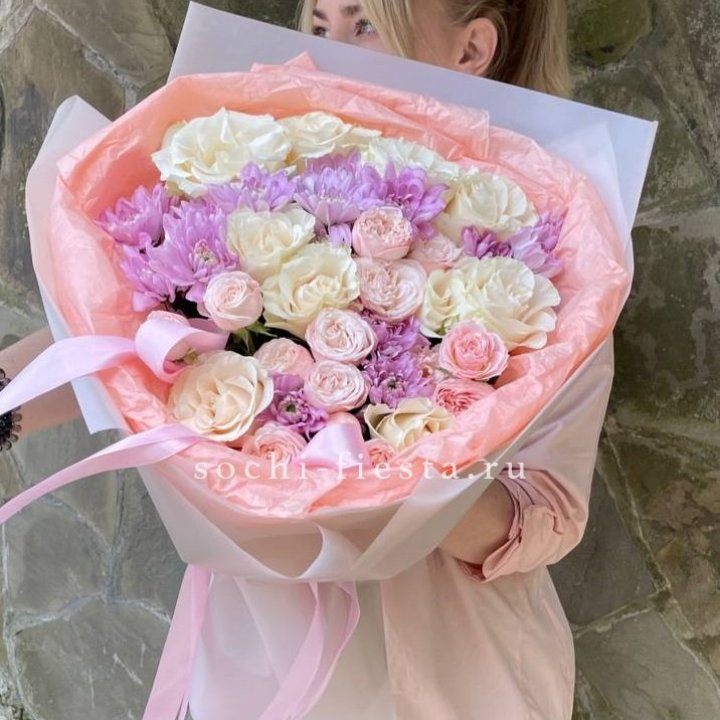 В Волгограде сборный букет — один из главных флористических форматов. Небольшой город не нуждается в авангарде и экспериментах: здесь ценят понятное, красивое и живое. Сборный букет с розами, хризантемами и сезонными акцентами — то, что флорист в Волгограде делает изо дня в день, и делает хорошо.