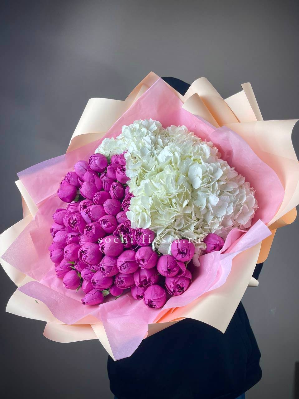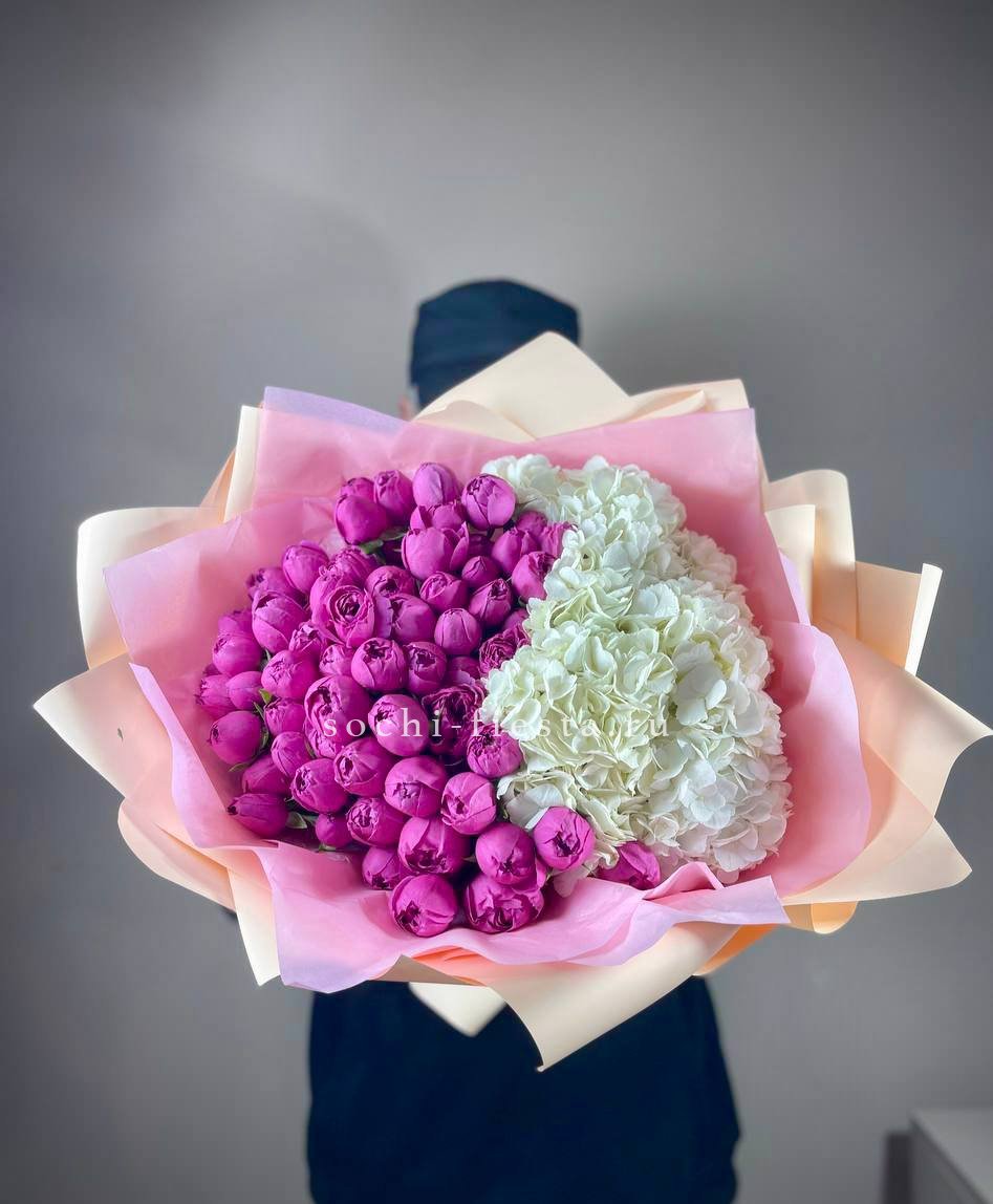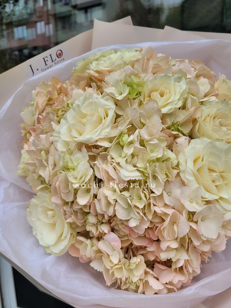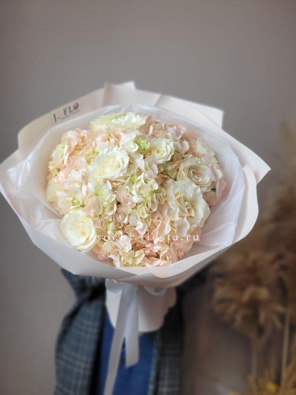 гортензия, диантус, хризантема, бомбастик, озатамус, пленка.